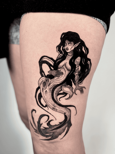 Encontrar a Ale fue una suerte. Hacía meses que estaba buscando alguien que trabajase el blackwork con esa temática oscura de una forma profesional y que fuese bueno técnicamente. Yo le llevé una idea base, que pulimos juntos, y no puedo estar más contento de haberme dejado guiar por el. 100% recomendable. Gracias tío!!! 🙏