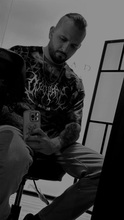 Tatuador de Blackwork en Málaga, especializado en ilustraciones oscuras y diseños personalizados.
