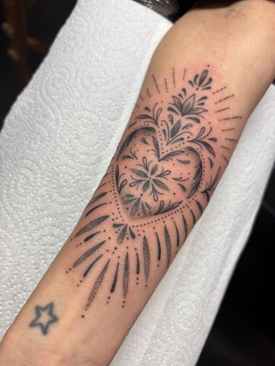 Alice Hope is a passionate and inclusive female artist specializing in blackwork, with a focus on ornamental, floral, and mandala designs. She works with both bold and fine linework and is a resident artist at Black Fallow in London Bridge.