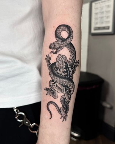 I am a London based interdisciplinary artist that began tattooing in NYC nearly ten years ago. My work pulls from many sources such as medieval & fantasy art, ancient & gothic motifs, and 80s traditional tattooing. I also love tattooing snakes, birds and creepy crawlies