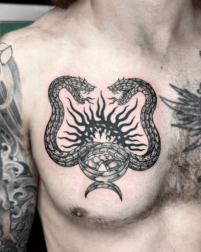I am a London based interdisciplinary artist that began tattooing in NYC nearly ten years ago. My work pulls from many sources such as medieval & fantasy art, ancient & gothic motifs, and 80s traditional tattooing. I also love tattooing snakes, birds and creepy crawlies