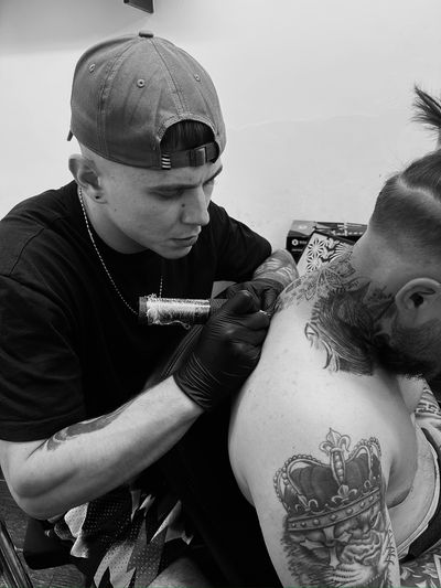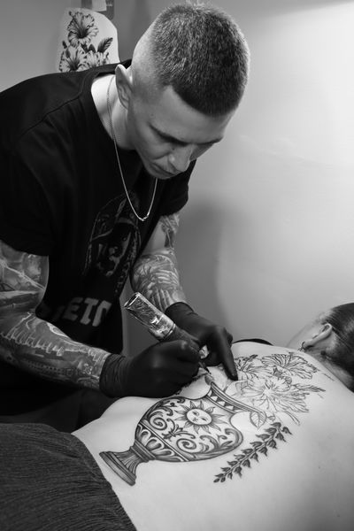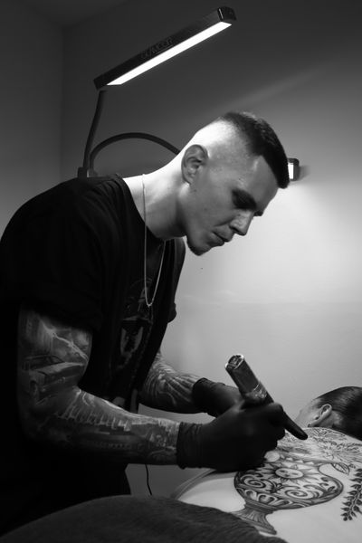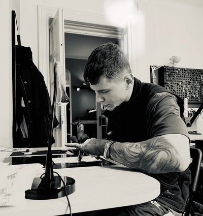 Dan is a tattoo artist based in London, Clapham Junction, and co-owner of Maximum Dosage Tattoo. Born in Romania, with a background in Graphic Design and Visual Art, he specialises in fineline and realism, creating custom pieces designed to fit the body and reflect each client’s vision.