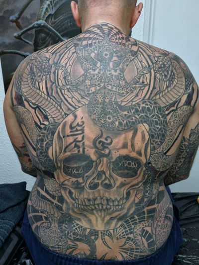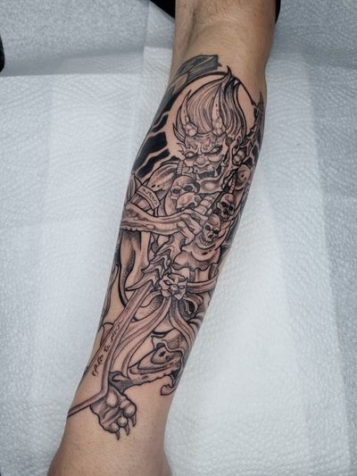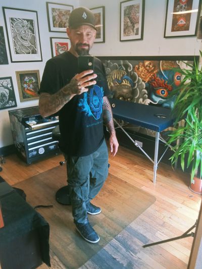 Tattoo Artist born and bred in London, I do illustrative tattoos which tend to be on the darker side of the scale. Influences come from various forms of dark art, oriental, comic art and horror films. I try to come up with original one off designs that i will only tattoo once. I find the drawing process essential to my tattoos, that way I know the piece will be in my style and not look like a generic design taken from google images. It's a longer process but very rewarding.