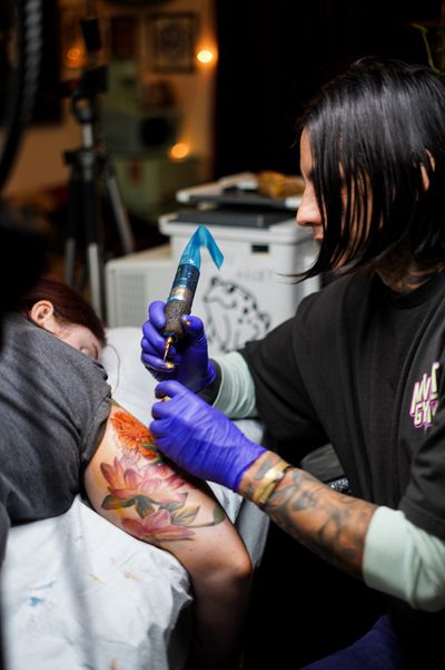 My style is different and unique. I do love tattooing color. Flowers, render paintings. I like my tattoos to look like pairings more than tattoos. But I also love tattooing straight lines and intricate details with black ink.