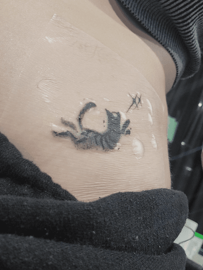 I love my tattoo so much! Jermey was very kind and talkative during the process. The little ghost cat was so cute I couldn't pass it up when I saw it on his flash sheet. I would get another tattoo from him!