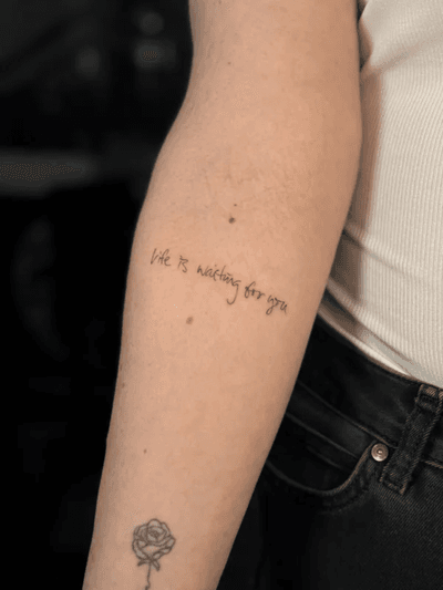 I came across Katerina on Instagram when looking for tattoo artists at South City Market as I’ve previously had tattoos done there. I was looking for someone who specialises in fine line tattoos and handwriting. I had some handwritten lyrics that the lead singer of my favourite brand had written for me a few years ago and wanted part of this tattooed. As soon as I saw Katerina’s work I knew she was the person for the job! Katerina was so lovely, friendly and professional at the appointment and understood what I wanted, and took the time to get it exactly right. I couldn’t decide on the placement of the tattoo and she offered her expert advice which was much appreciated. The tattoo looks brilliant, it’s so neat and is healing nicely. She went over the aftercare with me and sent this to me afterwards. She’s a true artist. I’ll definitely be back for more! Highly recommended.