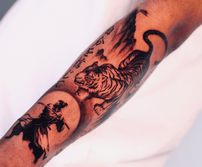 Jose delivered exceptional artistry with my tattoo. The mountains, samurai, tiger, and Kanji lettering blend seamlessly into a powerful, meaningful design. His skill, patience, and attention to detail are unmatched. The result is breathtaking, and I couldn’t be happier. Truly a talented artist highly recommend his work to anyone seeking perfection.