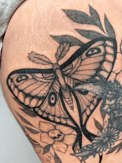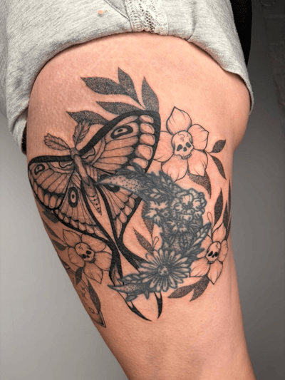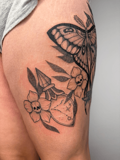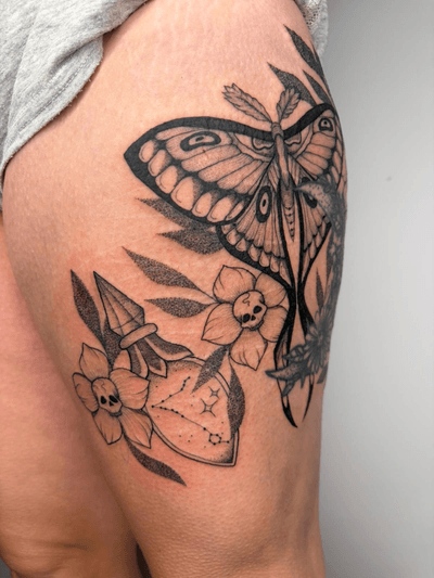Poppy has recently reworked one of her tattoos she did as an apprentice on my thigh, the beginning of a full thigh piece and she has absolutely smashed it yet again! She is unbelievable and puts up with all my crazy plans for things! Thank you Poppy! I really recommend her ❤️