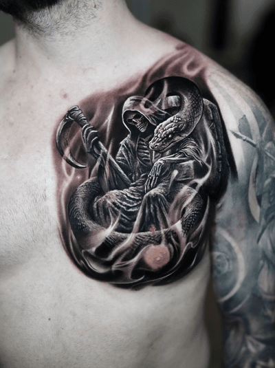 I specialize in large-scale projects. For me, this is more than a style, it’s a language. A way to capture what words can’t and to leave something meaningful on the skin forever. I’ve spent over a decade developing a distinct voice in realism, blending surrealism, symbolism & anatomical harmony.