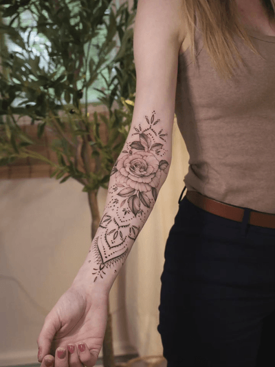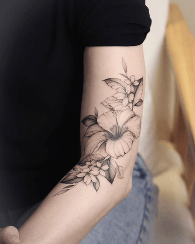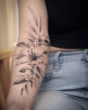 Hi I'm Kim! I'm doing fine line floral style in black and grey. I'm in the business for 11 years now. I love doing delicate flowers and make them fit perfectly with your body.