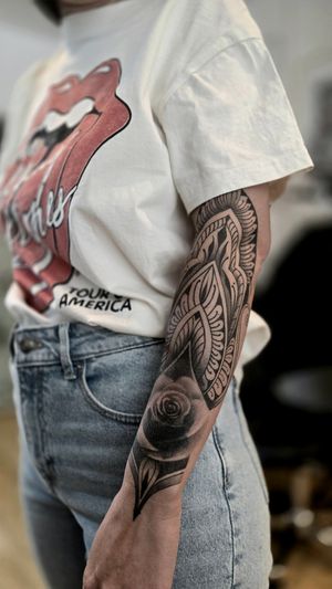 I recently got a large piece done by Alexis that starts at my ribs/bra line and goes down to my hip/thigh. I wanted a dream catcher to connect down to my sunflower tattoo that was previously done by a different artist and I love the way it flows together. She is an amazing tattoo artist that listens to her clients about the vision they have for their tattoo. I absolutely love the tattoo I have by her, the lines are very clean and the shading is amazing. I would recommend Alexis to everyone I know that is looking for a black and white tattoo. She is also very friendly, easy to talk to and makes getting a tattoo a very fun experience. I can’t wait to go back and get more done by her in the future!