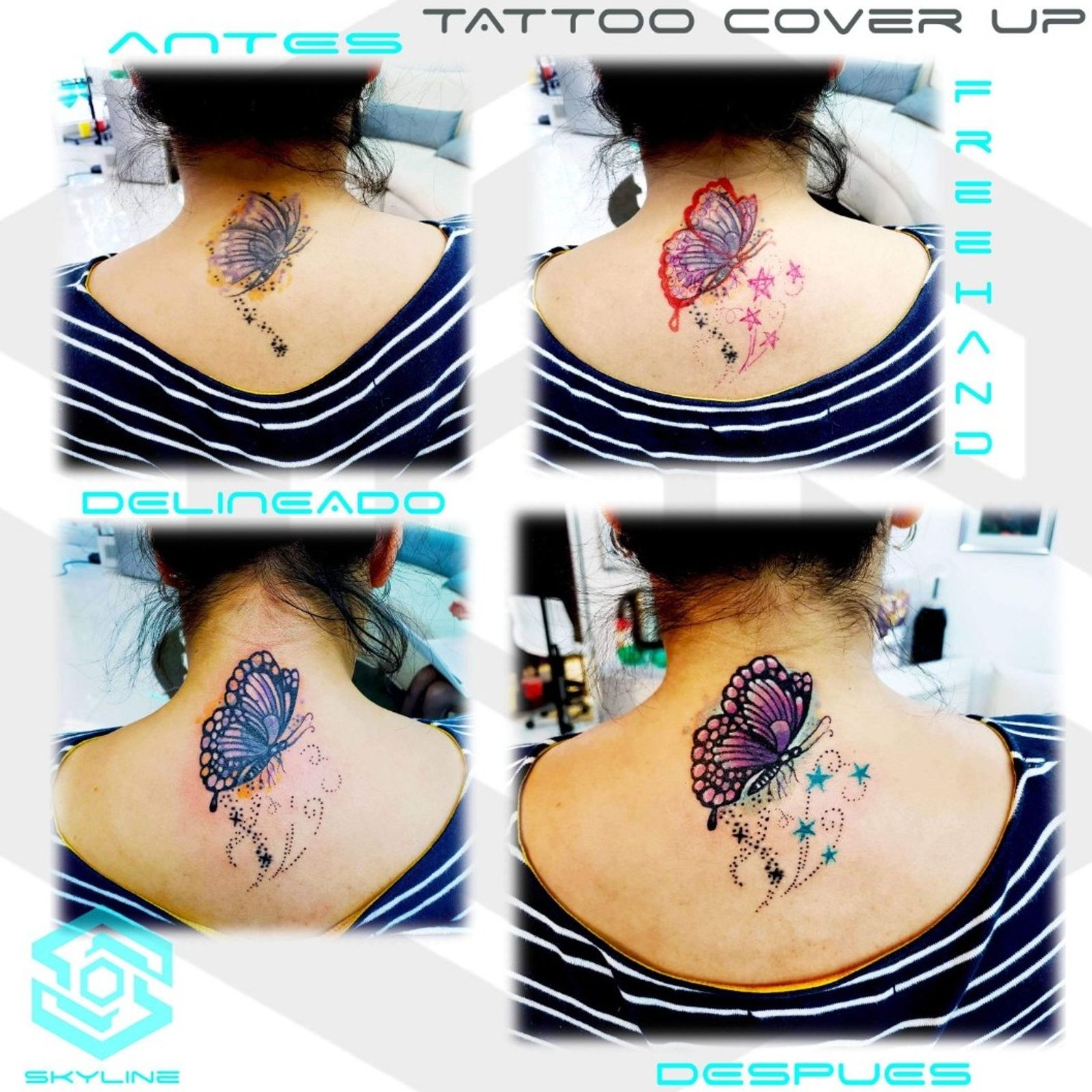 [TATTOO COVER UP] "Mariposa rediseñada" Estilo Ilustración. Full color. Diseño personalizado a freehand Una sesión Artista: FB/INSTA: @jaime.sxe #SkylineStudio #TattooCoverUp #CreateYourself