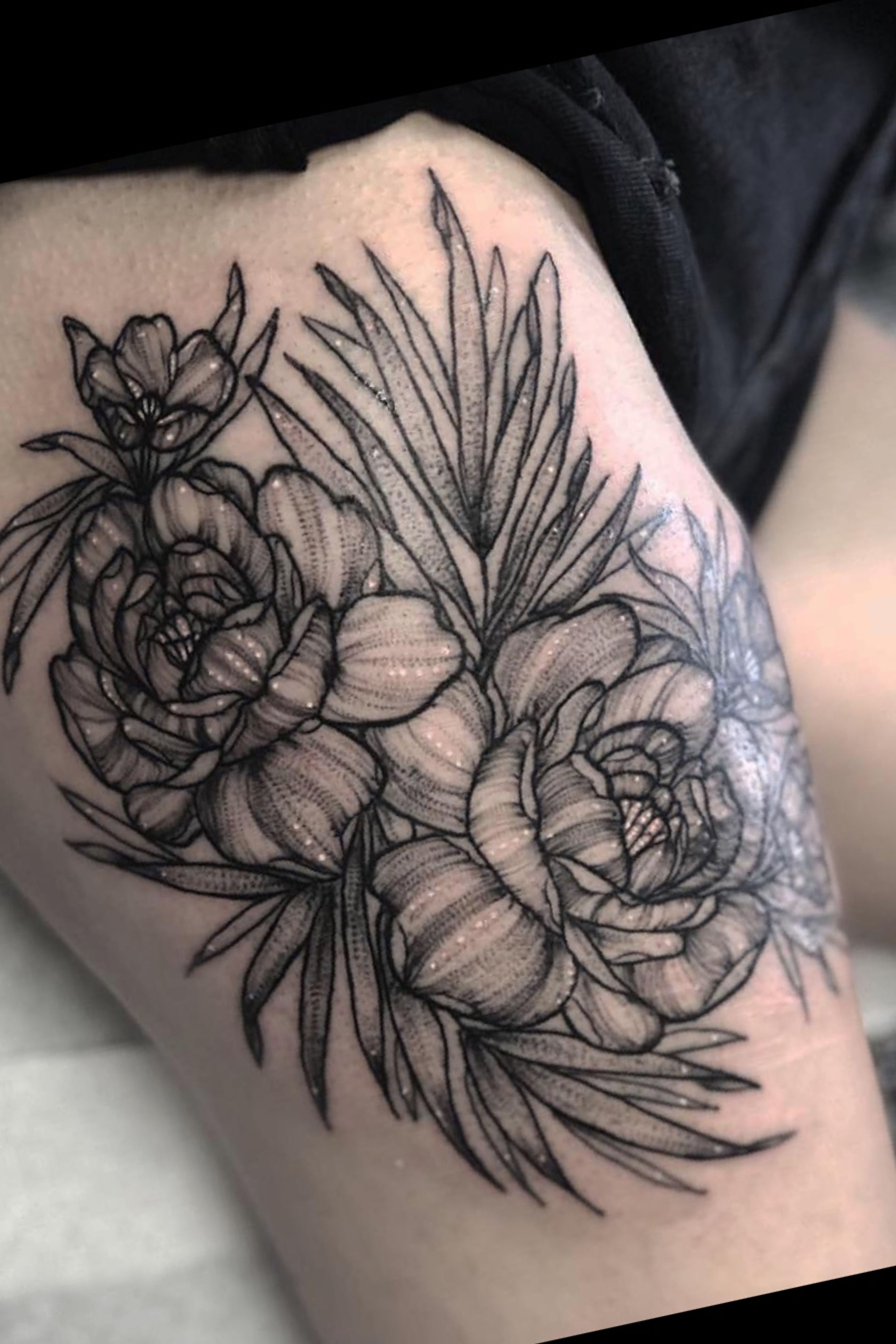 #blackwork #peony #peonies #floral #stippling
