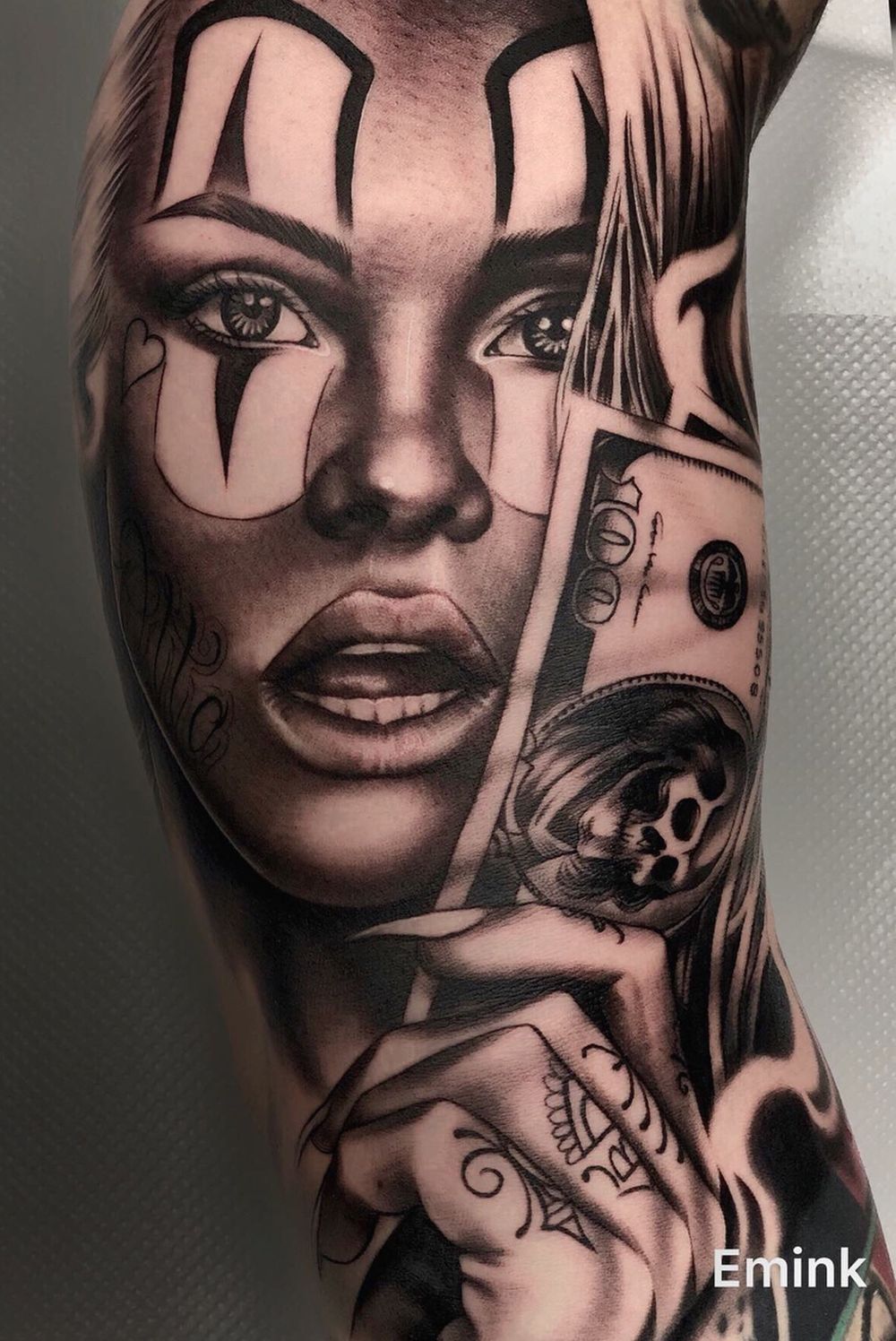 πŸ”Ž πŸ’΅ money monster πŸ’€ Thanks bro @inkedfresh for coming from fare why for your tattoo πŸ™πŸ½ . On my bro @inkedfresh By @emink_tattoo Done at : @eninktattoostudio Info& Booking: eminktatto@Gmail.com . #eminktattoostudio #eminktattoo #emink #tattooworld #mask #masktattoo #dolar #dolarrose #realistictattoo #tattoovideo #chicanotattoo #chicanoart #chicano #blackandgray #candele #blcakandgreytattoo #payasa #clown #clowngirl #flowers #rise #rosetattoo #roserosse #flowertattoo #girls #vicenza #vicenzatattoo #vicenzatattoostudio #payasa
