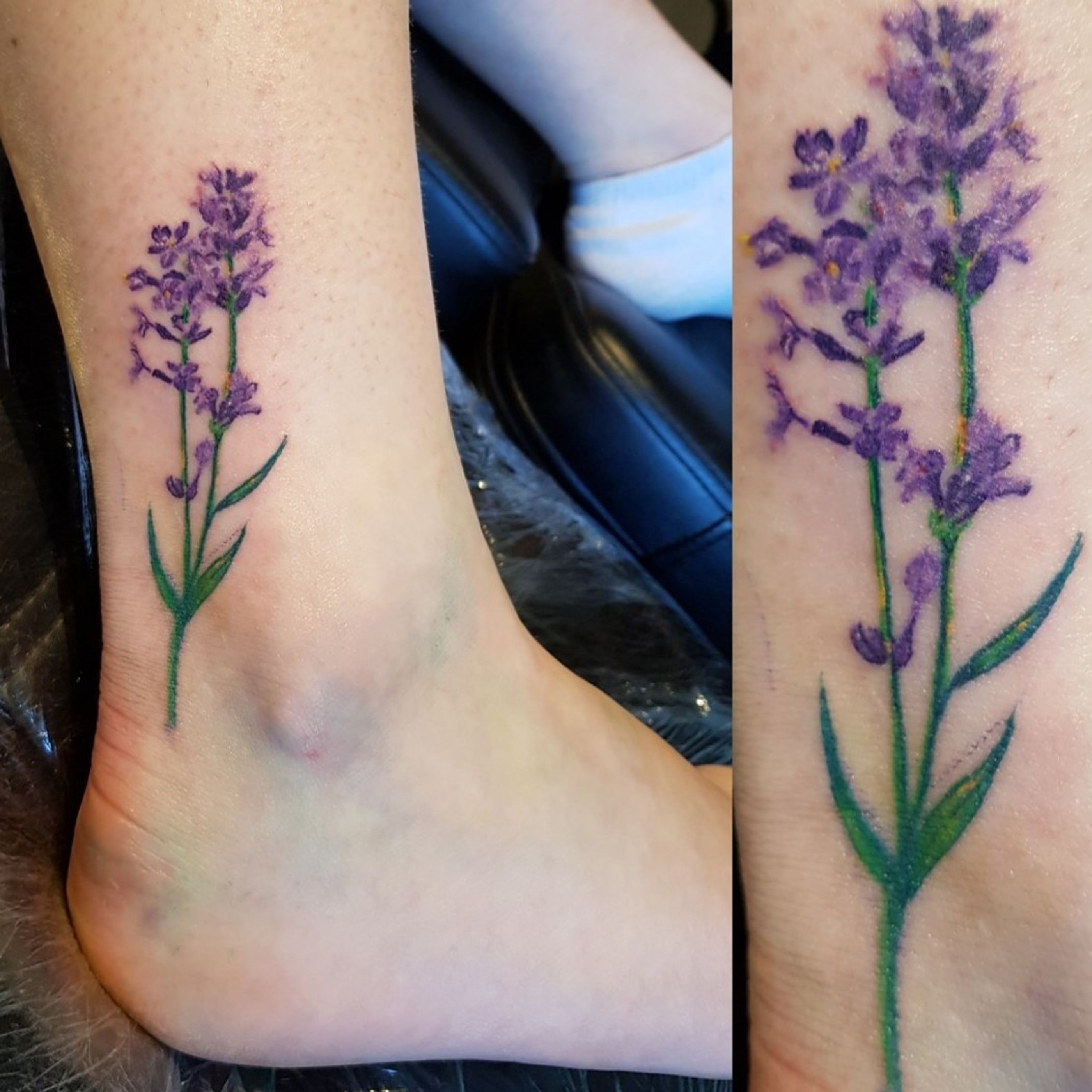 Lavender Sprig Ankle Tattoo Really enjoyed this one! #Lavender #LavenderTattoo #Flowers #Small #SmallTattoo #Girly #GirlyTattoo #Feminine #FeminineTattoo #Ankle #AnkleTattoo