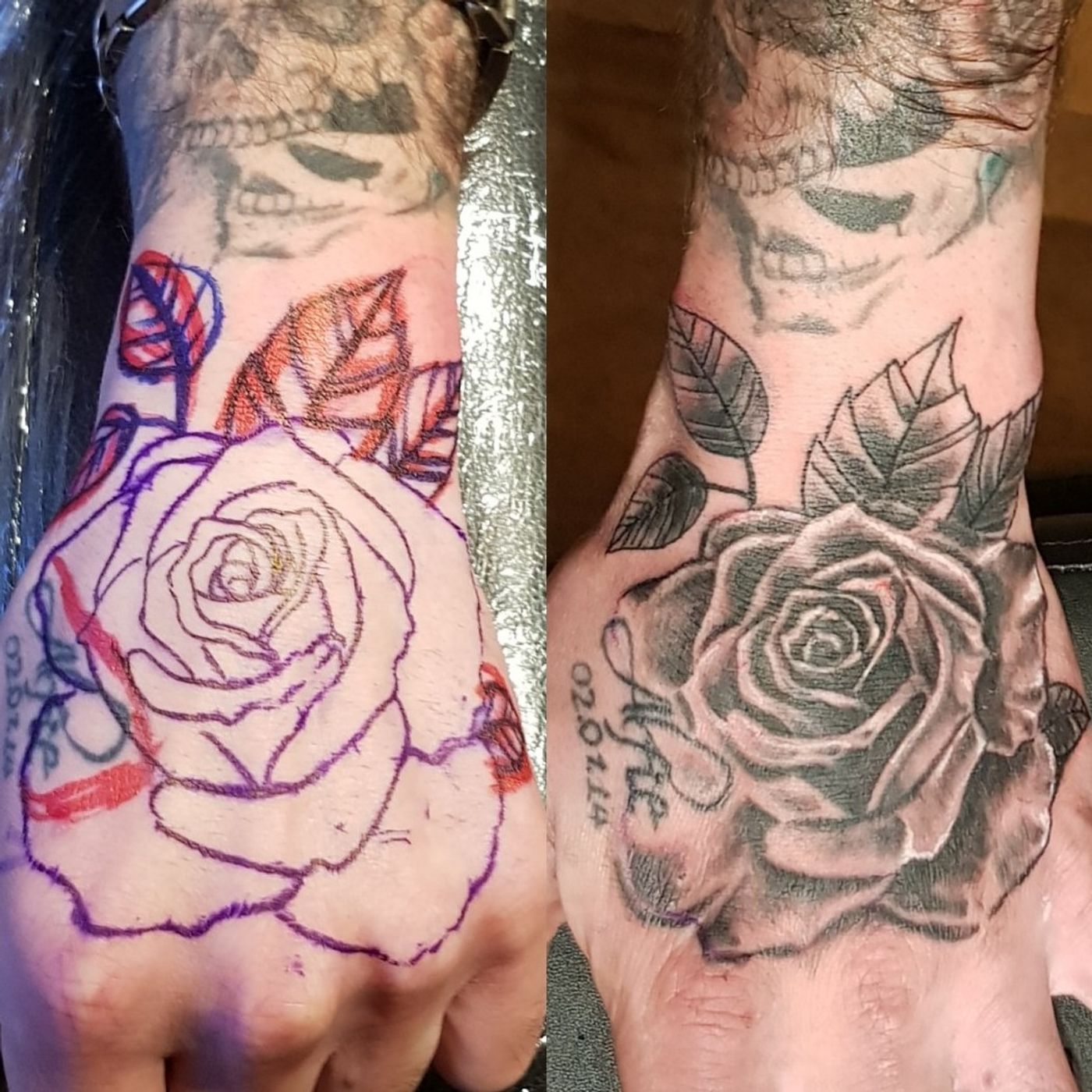 Rose Hand Tattoo - Stencil to Tattoo #Rose #RoseTattoo #HandTattoo #Classic #CustomDesign #CustomTattoo