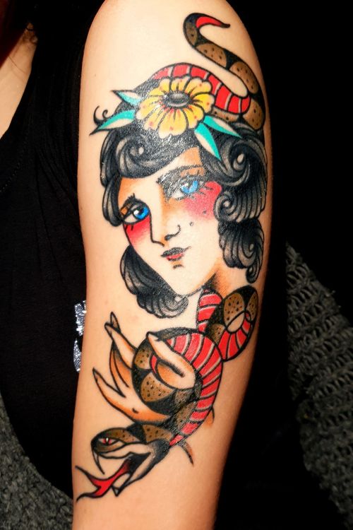 🙎🏻‍♀️🐍 ❤Serce Róży tattoo🌹 🦅Gruby Kruk🦅 #oldschooltattoo #woman #snake #plgirl #sercerozytattoo #grubykruk #grudziadz #kwidzyn #tattoo #inkedgirl