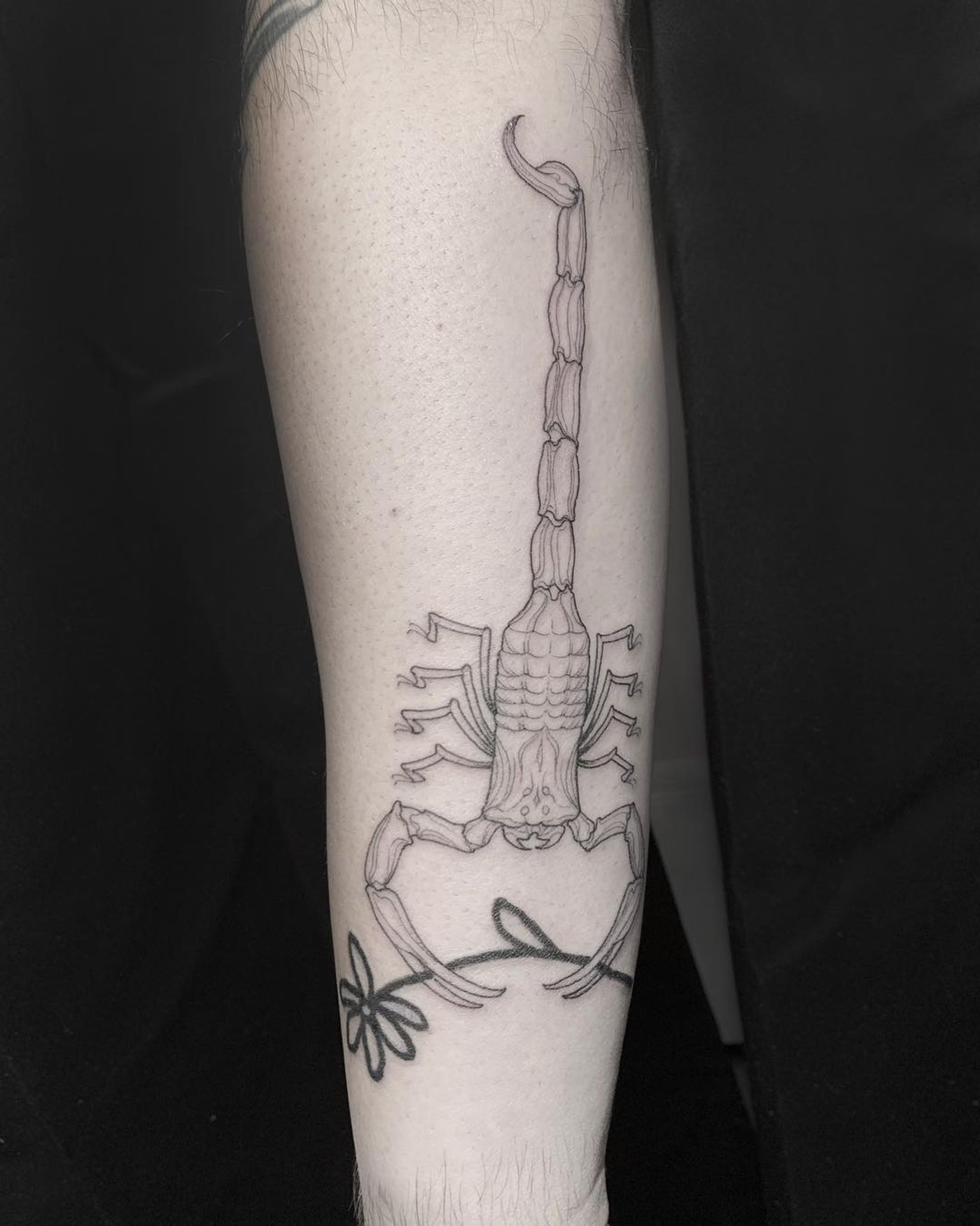 #tattoobyscottcampbell #scorpion #insects #flower #fineline #blackwork