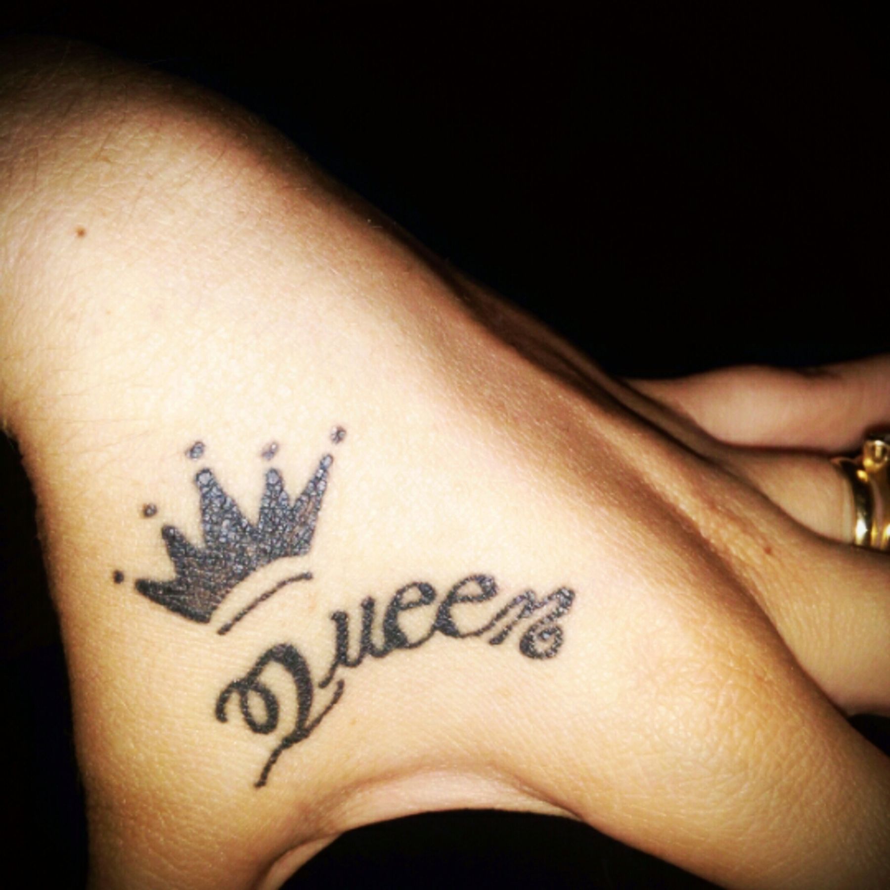 My Queen tattoo. My hubby has King on his hand. So when we hold hands they are together :)