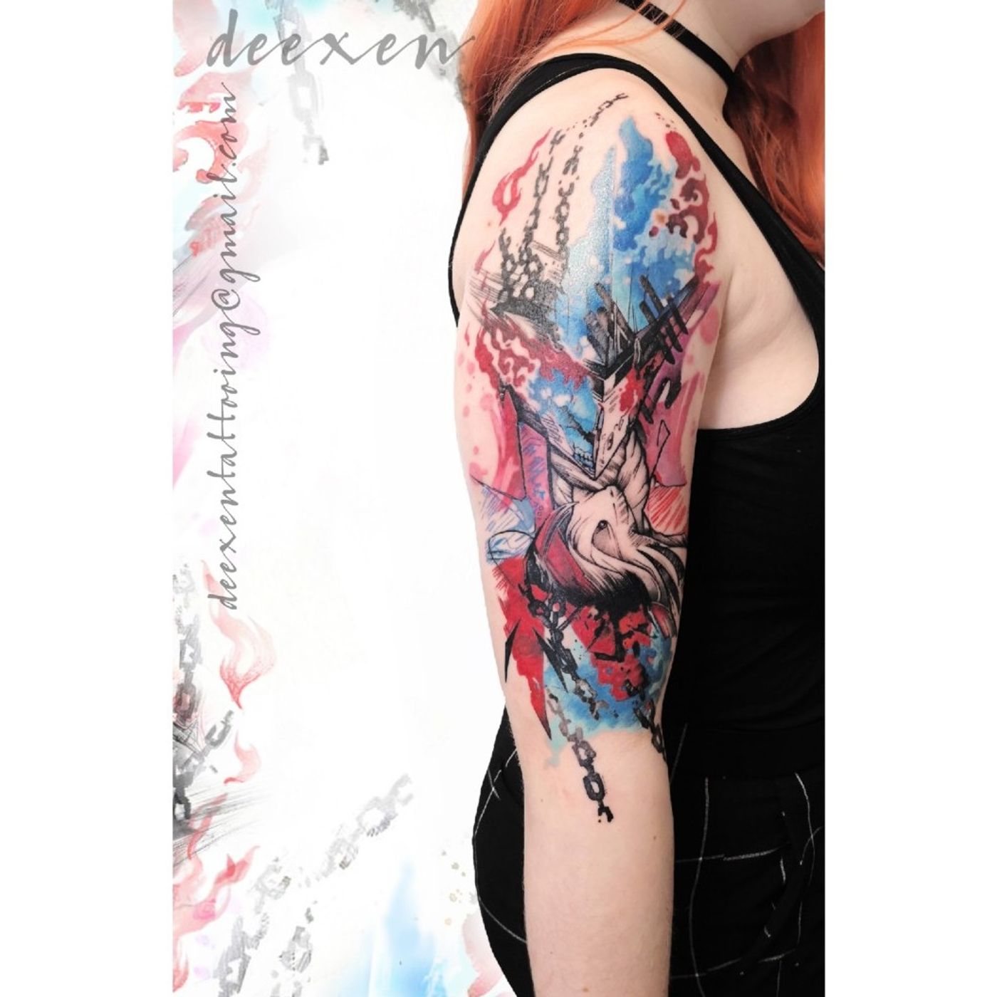 🌑Dark Hour 🎮From Shin Megami Tensei: Persona (video game) ➡️Contact: deexentattooing@gmail.com ♦️Merci Jessica! . . . #tatouage #personatattoo #videogametattoo #shinmegamitensei #persona5 #graphictattoo #tatouage #watercolortattoo #watercolortattoos #watercolourtattoo #colortattoos
