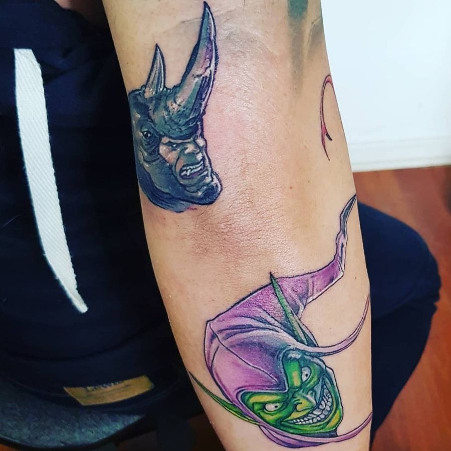 Third wave of #supervillains threatening my #Spiderman tattoo made by artist #Andrezor #santiago #chile #SantiagoChile #GreenGoblin #Rhino