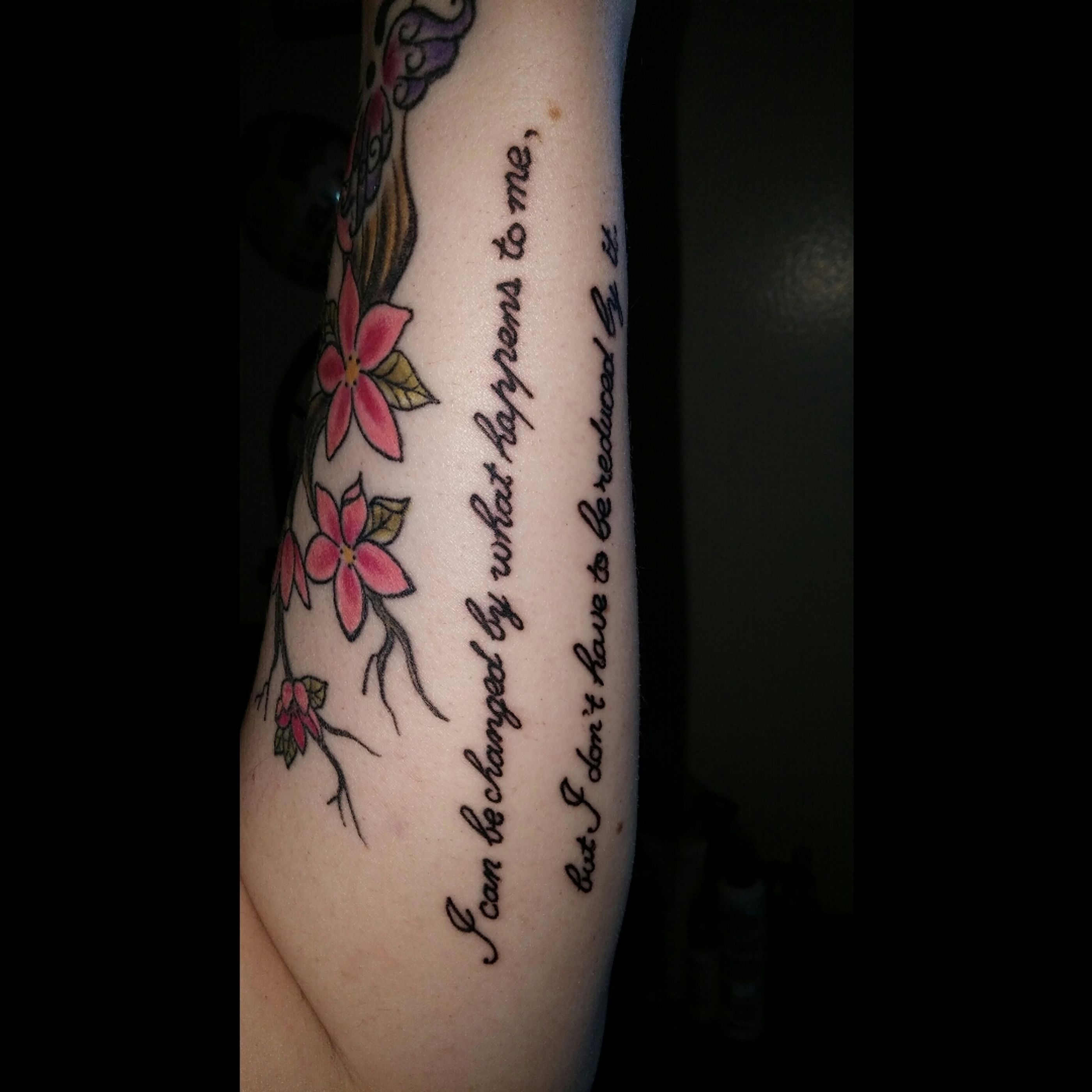 Saying that was in the cancer unit at our local hospital. My mom had lung and brain cancer and passed. Have this as a part of her memorial tatt.