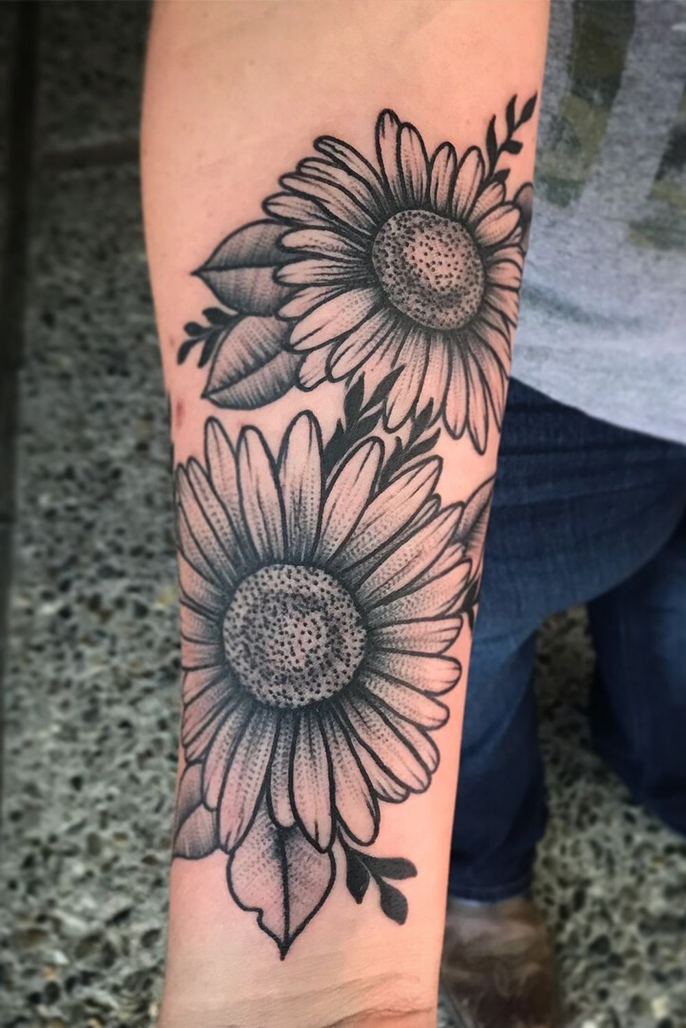 Sunflowers #sunflowertattoo #blackwork #black #whipple #stipple #whipshade #dots #flowertattoo #sunflower #girlswithtattoos #keepitsimple