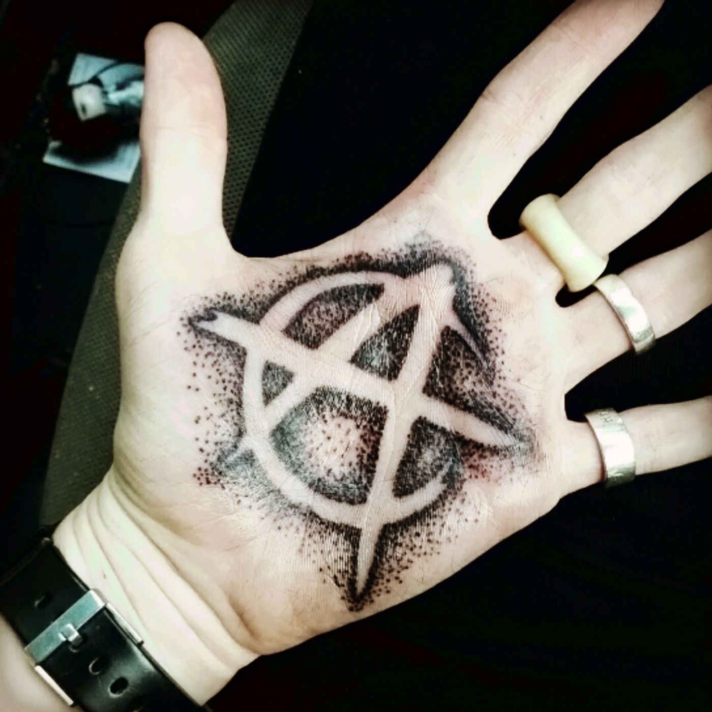 Put this in my palm yesterday #Anarchist #palmtattoo #dotwork #anarchy #punk