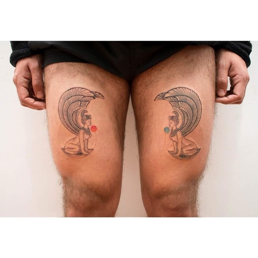 Interpretación del Oráculo del Sur de "La historia interminable" donde Atreyu tiene que pasar por el oráculo para salvar a Áuryn gobernante del reino de fantasía. Se dice que solo una esfinge puede soportar la mirada de otra esfinge, ya que si un humano se atreviese a mirarla quedaría petrificado de manera instantánea hasta que resuelvan todos los misterios del mundo. La cagó la pelicula buena, que vi muchas veces en mi infancia y que volví a ver antes de hacer este tatuaje. Creo que ahora voy por el libro. Gracias Carlos 🙏 . . . . . . . . . . #blackwork #blackink #blxckink #chiletatuajes #tattoochileno #onlyblackart #linework #wipshading  #dotworkers #dotwork #btattoing #linework #portalchiletattoo #finelinetattoo #puntinato #fineliner #neverendingstory #theneverendingstory #southernoracle #contemporarytattoing #colortattoos #sphinxtattoo #sphinx
