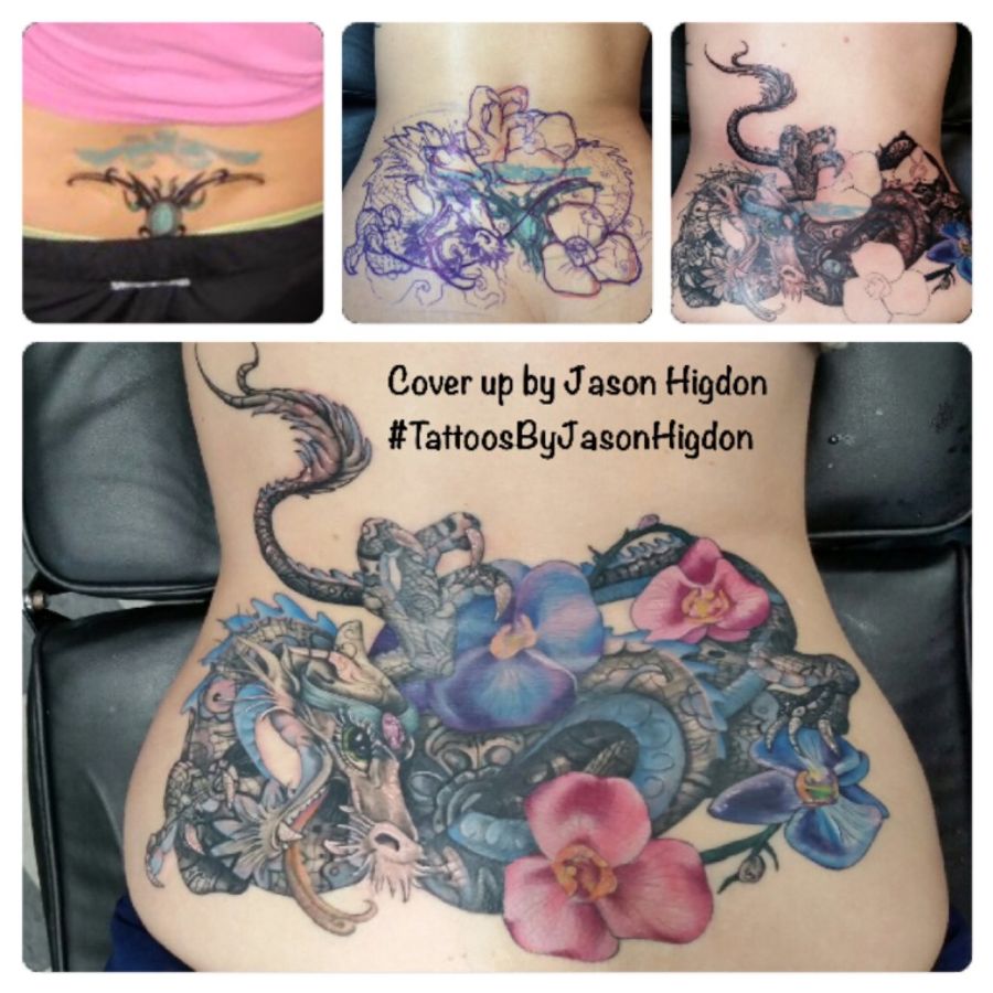 Amazing cover up by Jason Higdon in Jacksonville, NC. #dragon #dragontattoo #coverup #tattoosbyjasonhigdon #jacksonvillenc #tattoodo