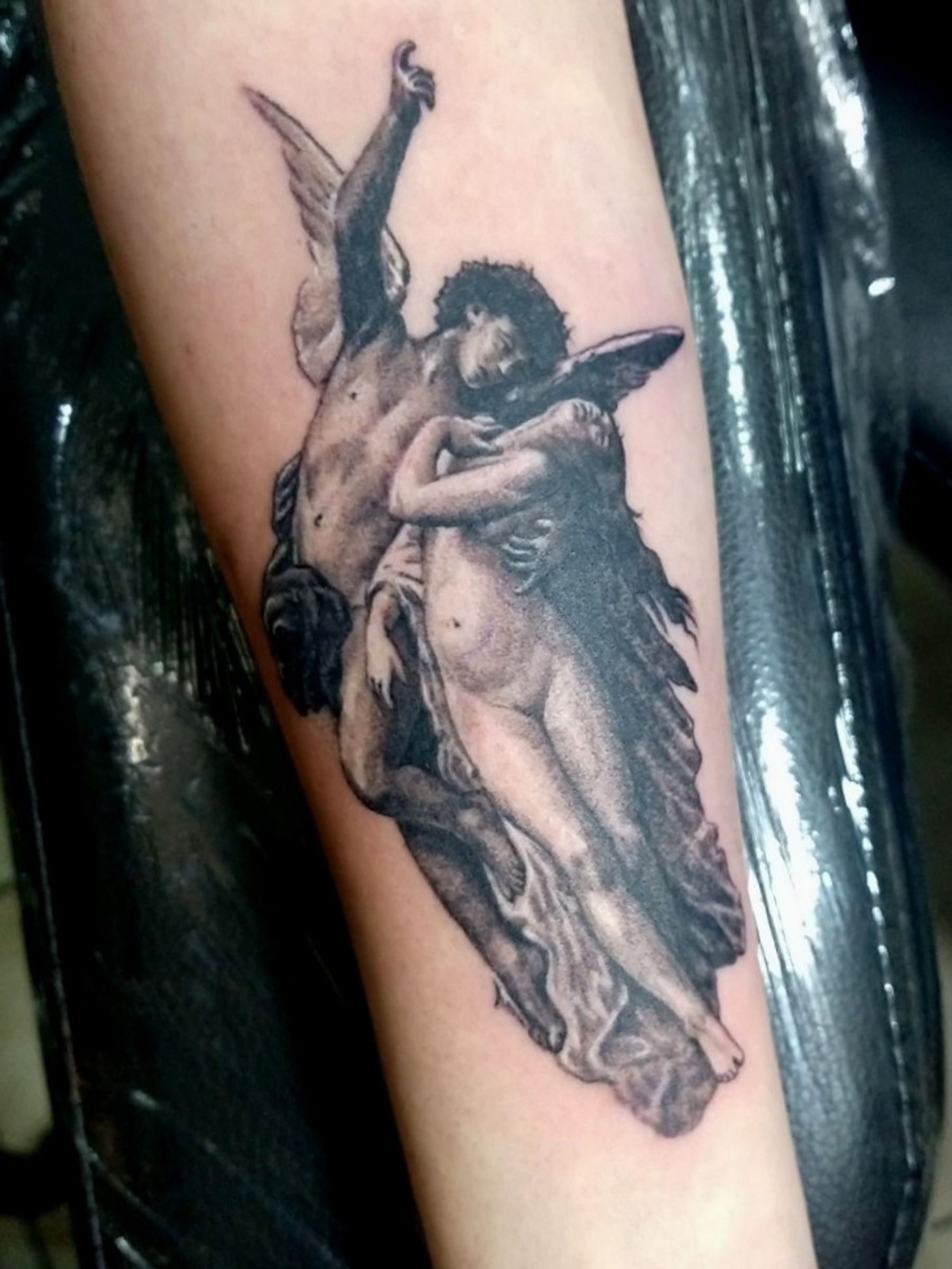 Psyche y Cupido πŸ‚πŸ₯‚ Eros enamorado de psique se la lleva para estar juntos por la noche. πŸŒ™ . . . . #eros #cupido #psique #psyche #greek #griegos #mito #miths #paint #classicpaints #pinturaclasica #tats #tattoolife #tattoolifestyle #love #enamoralzados #tatuajes #tattuaggio #tattuagi #tattoo