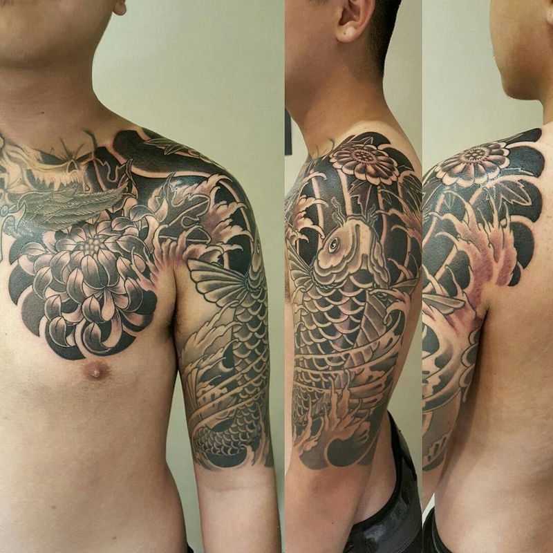 Black & Grey Japanese Half Sleeve for my client #tat #tatt #tattoo #tattooed #cooltattoo #japanesestyle #japanesesleevetattoo #yakuzatattoo #tattoos #suicideboy #inkedandsexy #inked #inked #blackandgreytattoo #tattoooftheday #instatattoo #irezumi #tattooedandnaked #sleevetattoo #koitattoo #koiyak #shanerascal #shanetattoostudio #chukaikemamantattoo #chukaikemaman #traditionaljapanesestyletattoo