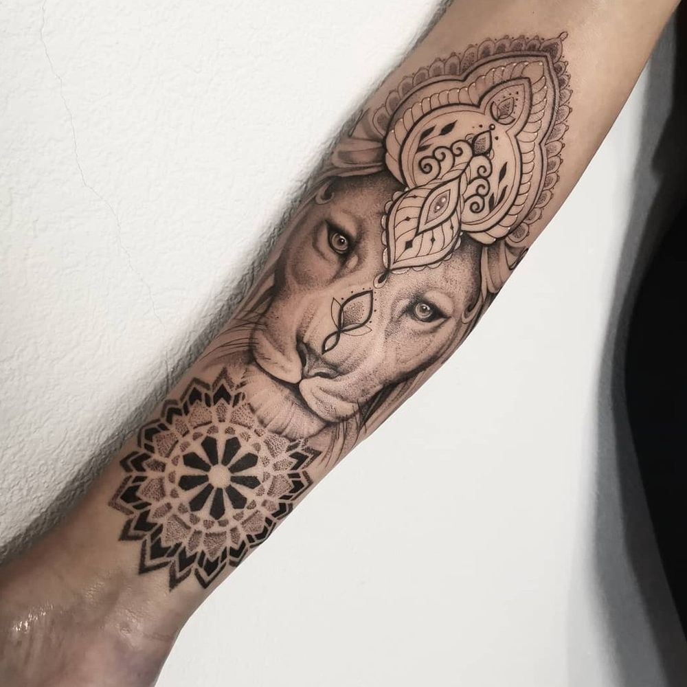 #liontattoo #blackworkerssubmission #blacktattoo #gdansk#xystudio #mandalatattoo #mandala #geometrictattoo #girlytattoo #girl #lion
