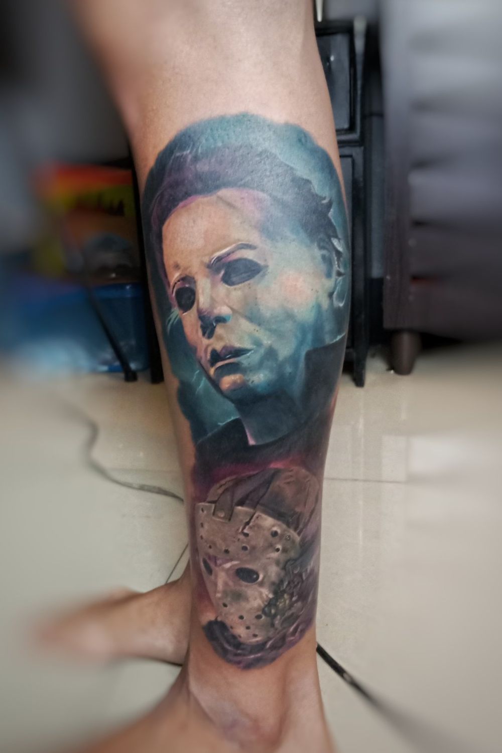 #halloween #michaelmyerstattoo #FridayThe13th #jasonvoorheestattoo #horrortattoo #horrorrealism #horror #horrorart
