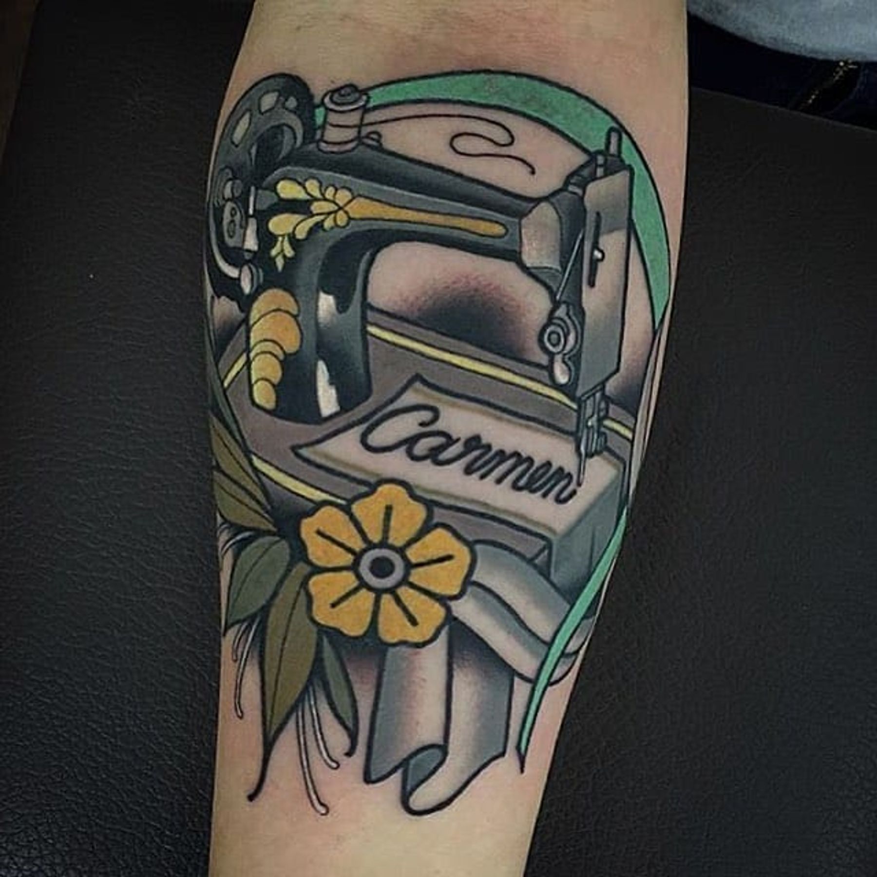 Beautiful sewing machine tattoo. #DidacGonzalez #neotraditional #sewingmachine