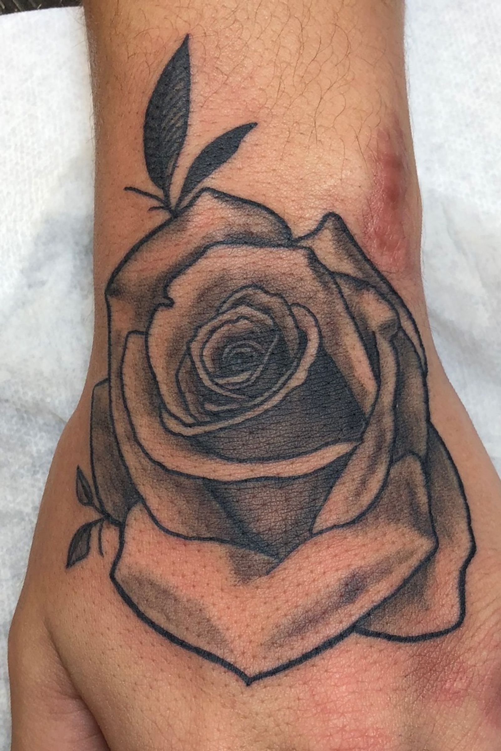 Fun black and grey hand rose #rosetattoo #handrose #blackandgrey #blackandgreyflower #flowertattoo