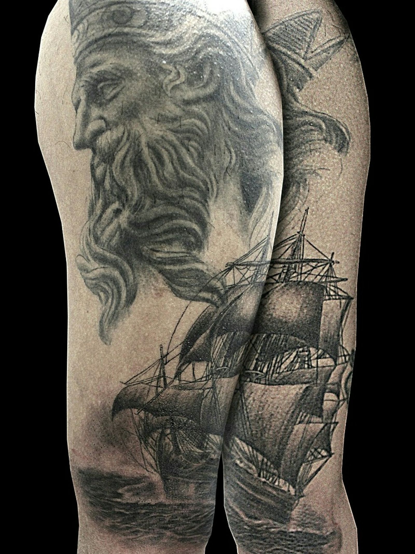 Poseidon and ship #poseidontattoo #Poseidon #ship #boat