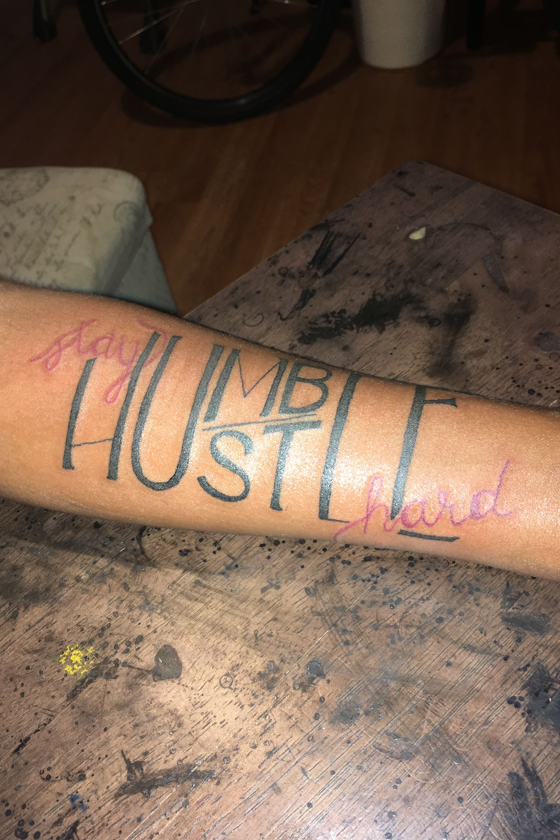 Cool stay humble hustle hard tattoo.