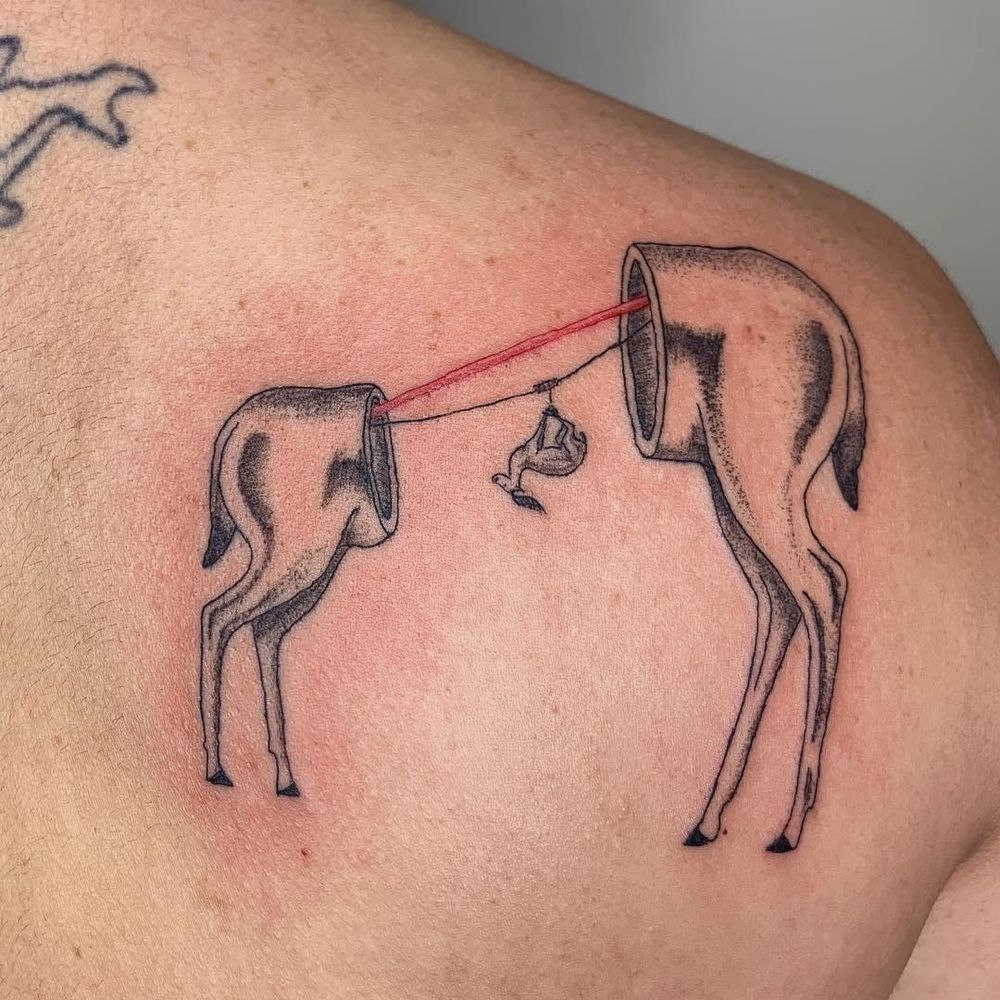 Illustrative tattoo by Ori Vishnia #OriVishnia #illustrative #abstract #expressionism #linework #fineline #color #sketch #fineart