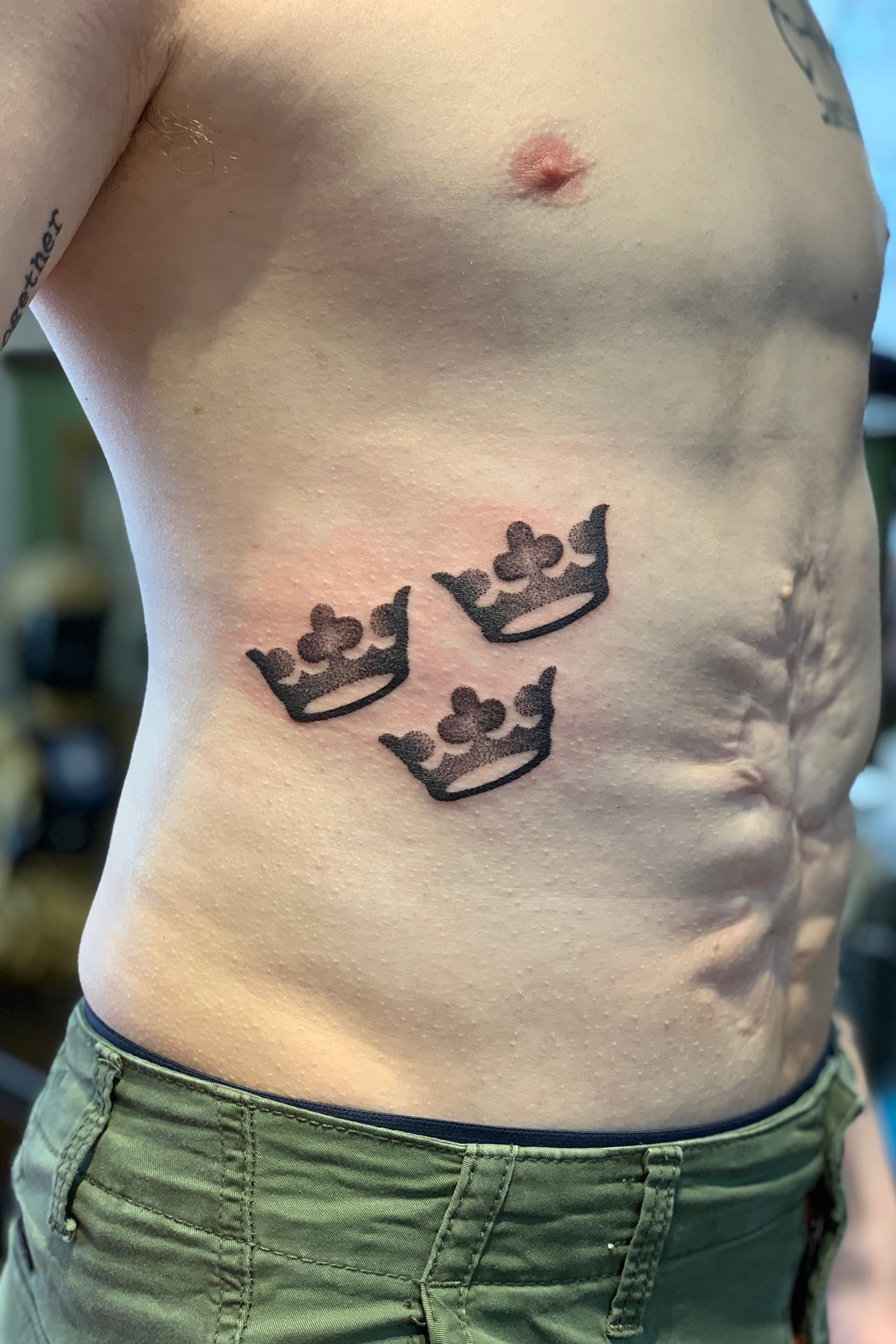 Swedish three krowns dotwork tattoo #dotwork #dotworktattoo #sweden #trekronor #stockholm #södermalm #studioseventattoo #maryjane #maryjanetattoo