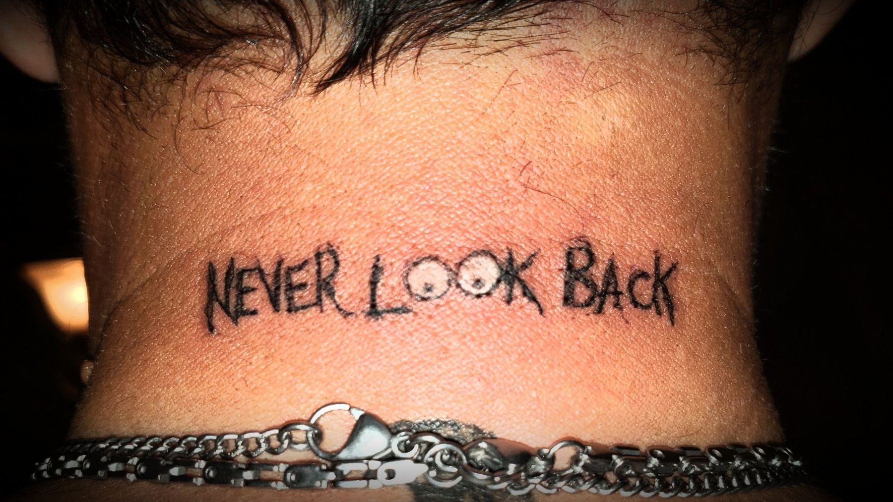 #neverlookback #blackwork #letteringtattoo #eyes
