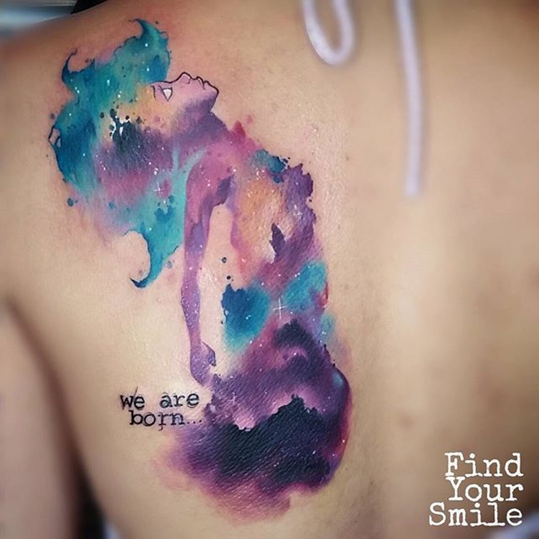 Watercolor Galaxy Tattoo by Russell Van Schaick #WatercolorGalaxy #WatercolorGalaxyTattoo #Galaxy #GalaxyTattoos #WatercolorTattoos #Watercolor #Space #WatercolorSpaceTattoo #RussellVanSchaick