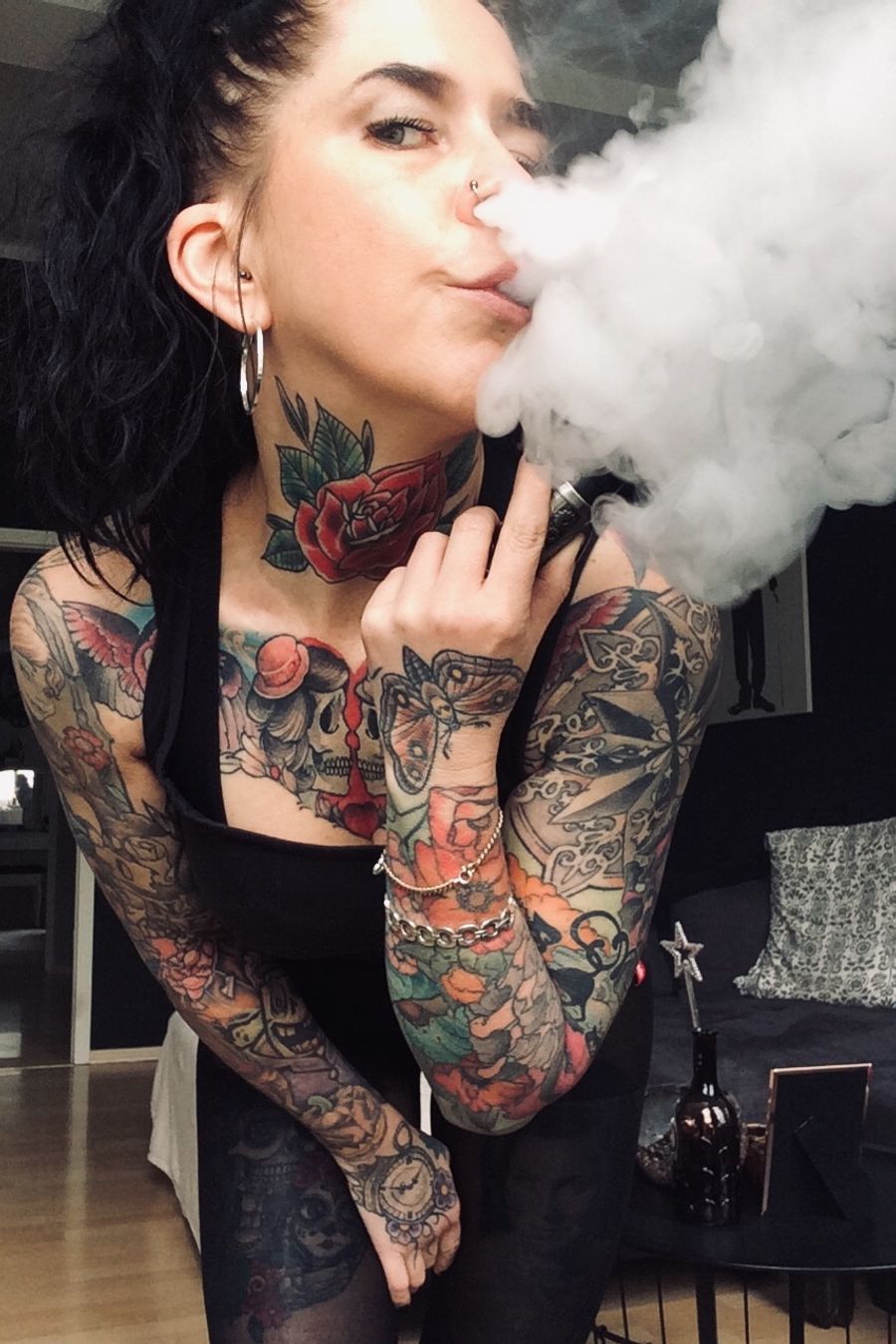 #chesttattoo #chestpiece #colortattoo #moth #skull #sleevetattoo #sleeve #throattattoo #newschool #rose #inked #tattooed #girl #Tattoodo #tattoodobabes