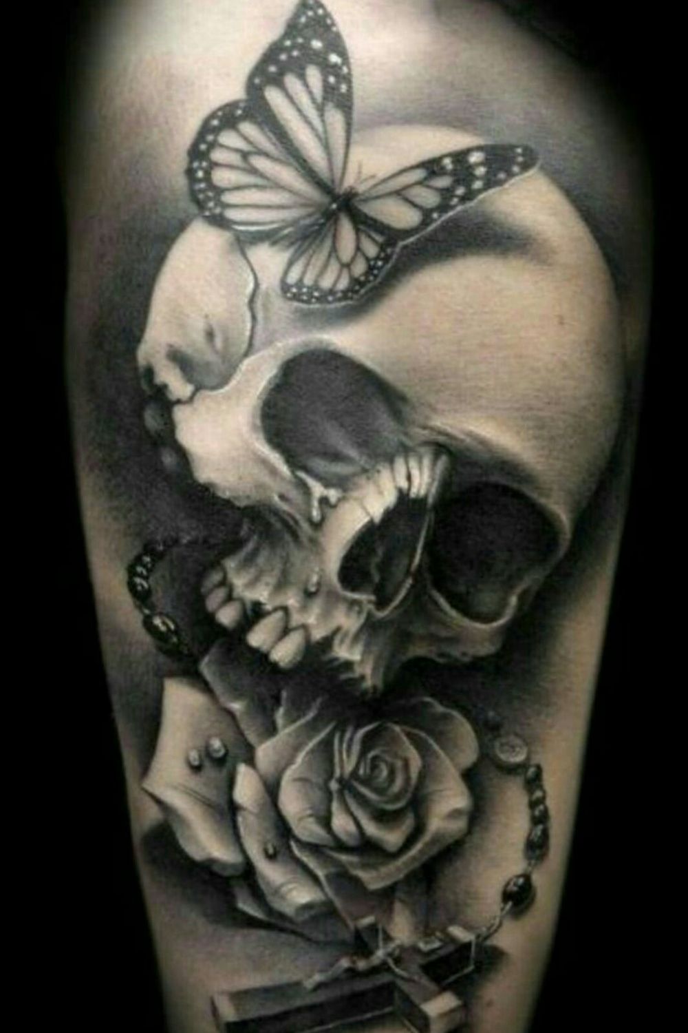 Memorial Tattoo for Mom Skull Black and Purple vibrant roses Tribal dragonfly Mom's signature as Love Always, Mom