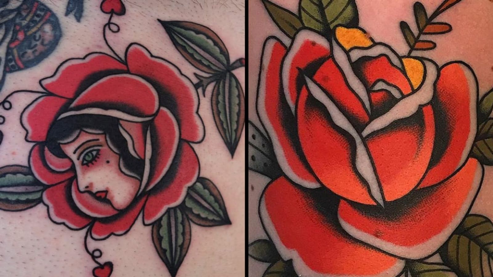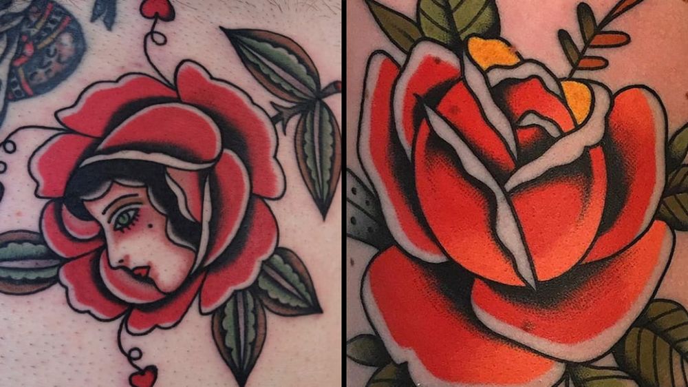 Traditional Rose tattoo on the left by Ivan Antonyshev and traditional rose tattoo on the right by Alex Zampirri #AlexZampirri #IvanAntonyshev #traditionalrosetattoo #traditionalrose #rosetattoo #traditionaltattoo #traditional #flower #floral #plant