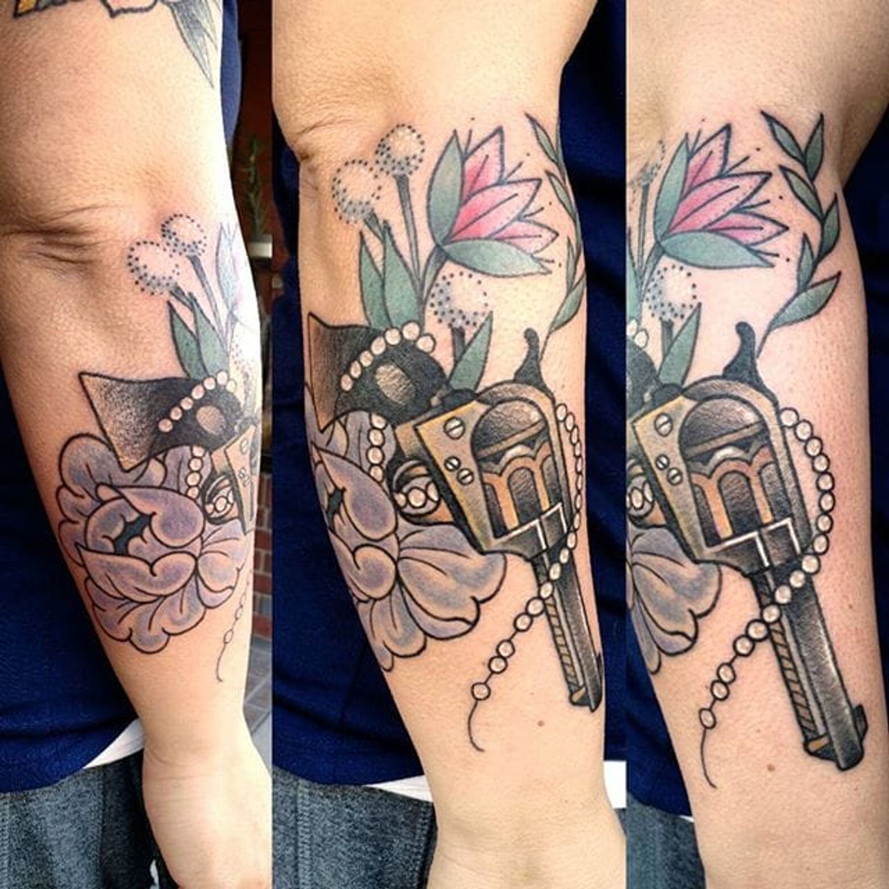 Six Shooter Tattoo by Lana Zellner #SixShooter #SixShooterTattoos #RevolverTattoos #Revolver #Guntattoo #WesternTattoo #WildWest #Cowboy #CowboyTattoo #LanaZellner