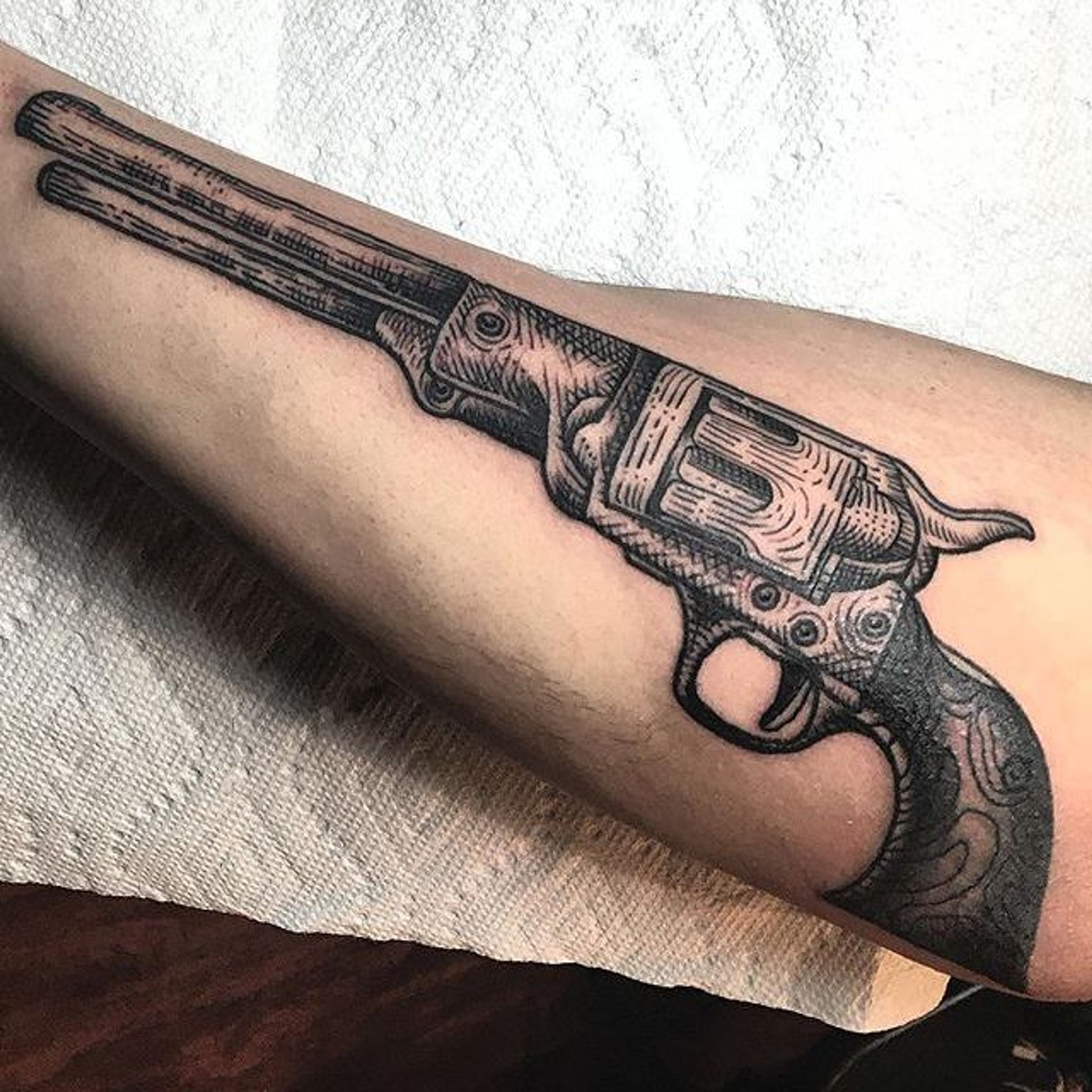 Six Shooter Tattoo by Hira Lupe #SixShooter #SixShooterTattoos #RevolverTattoos #Revolver #Guntattoo #WesternTattoo #WildWest #Cowboy #CowboyTattoo #HiraLupe
