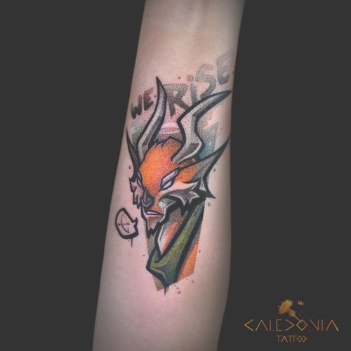 "We Rise" Voden from the video game "Gigantic". For any tattoo enquiry, please contact me directly on my new website: www.caledoniatattoo.com #voden #gigantic #videogametattoo #caledoniatattoo #scotland #graphictattoo #tattoouk #graphic #edinburghtattoo #tttpublishing #ink #tattooartist #contemporarytattooing #taot #tattooer #inspirationtattoo #tattoodo #radtattoos #tttism #illustrationtattoo #geektattoo