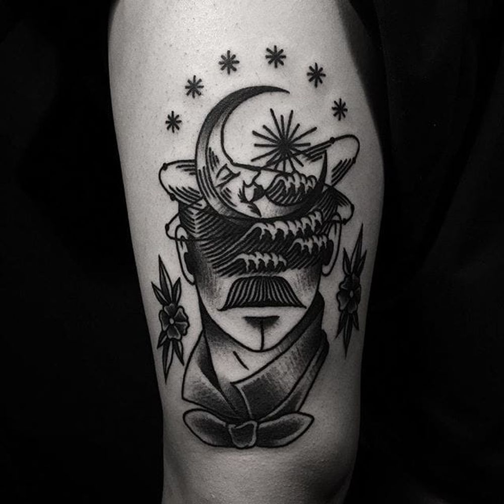 Blackwork tattoo by Nawoo Kim. #NawooKim #blackwork #portrait