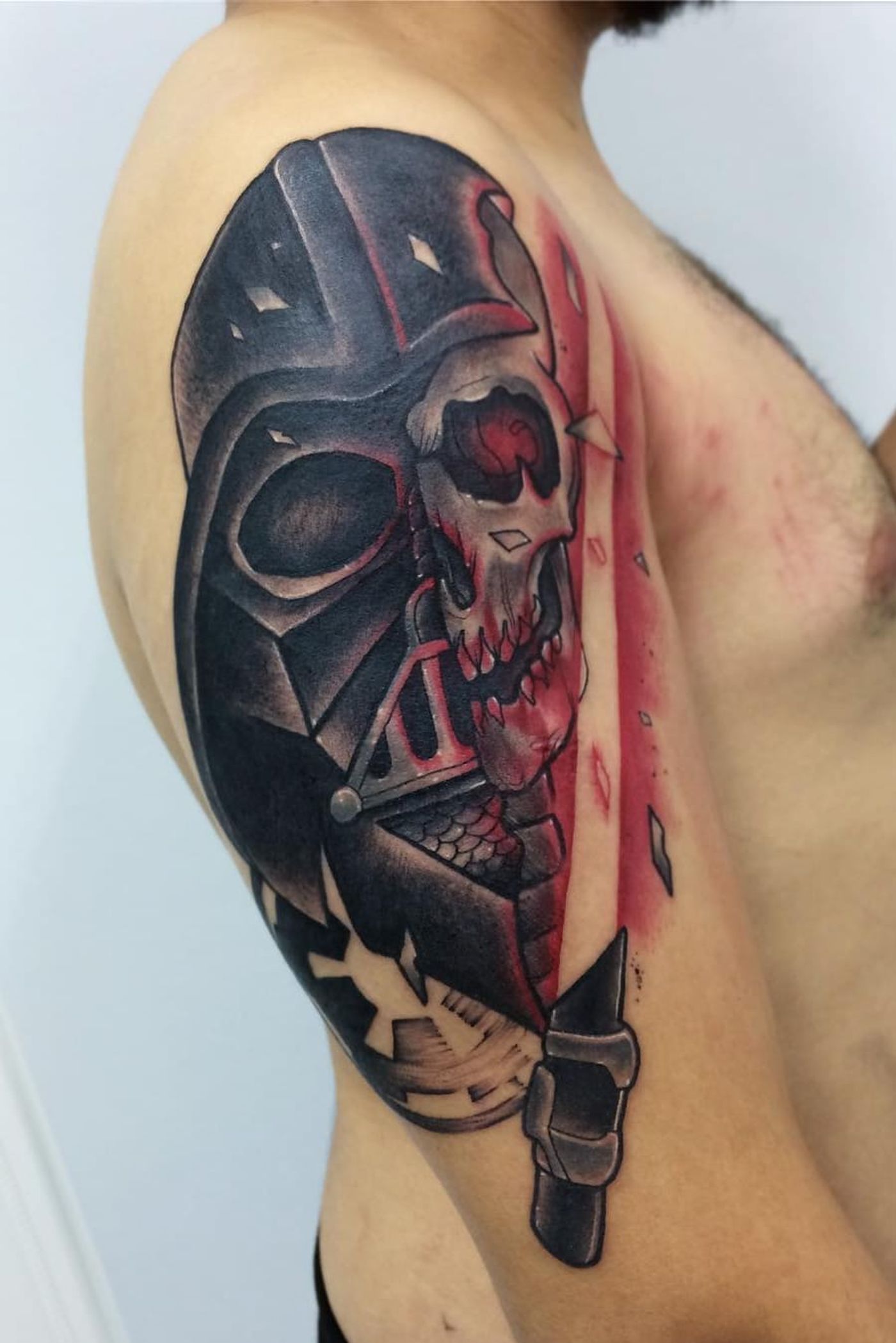#LiviaDeBarcellos #Nyu #colorida #colorful #TatuadorasDoBrasil #darthvader #starwars #nerd #geek #filme #movie #sabredeluz #lightsaber